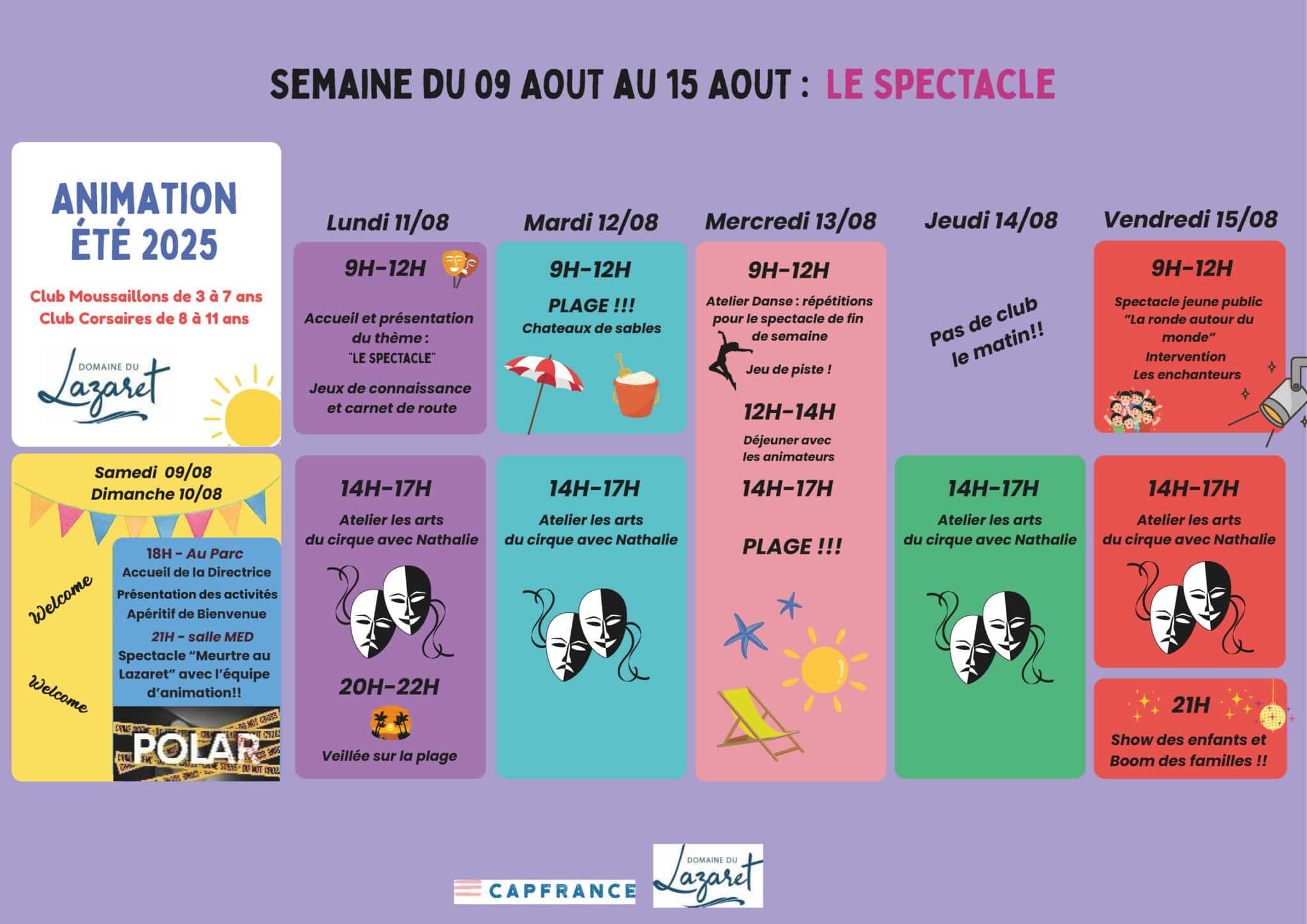 Actividades del Club Infantil para niños de 3 a 11 años – Tema: Entretenimiento – Del 9 al 15 de agosto