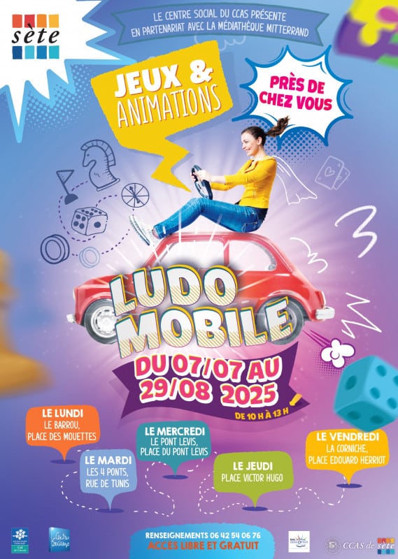Del lunes 7 de julio al viernes 29 de agosto de 2025, la ludoteca móvil de la CCAS de Sète estará en la calle todos los días de la semana, visitando los barrios de la ciudad: