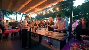 Le restaurant panoramique sur place élimine la logistique des restaurants extérieurs, les questions de régimes alimentaires non anticipés, les retards qui décalent tout le programme. Au Domaine du Lazaret, l’offre de restauration englobe les buffets et menus de groupes.
